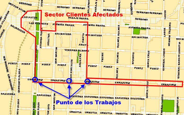 Por la anterior, el día miércoles 05 de Marzo del 2014 necesitamos suspender el servicio en el sector señalar desde las 15:00 hrs. y hasta las 21:00 hrs.