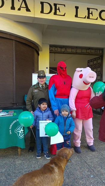 La integrante de la patrulla comunitaria cabo 1º karen Contreras Flores de la 3ª Comisaría de Carabineros Traiguén, se traslado al sector céntrico de esta comuna con la finalidad de dar una serie de recomendaciones, ya que durante estos días son muchos los estudiantes que están de vacaciones y por diferentes razones, no todos tienen la oportunidad de salir de la ciudad., es a ello que precisamente va enfocado nuestro mensaje preventivo y de autocuidado en estas vacaciones invernales, ya que la mayoría pasa su tiempo libre en la redes sociales sin contar aveces con la fiscalización de sus padres. En esta labor se la hizo entrega de trípticos sobre al BULLYING, GROOMING Y ABUSO SEXUAL, haciendo participe a los padres en esta iniciativa de auto cuidado, con la compañía además del los personajes del momento el HOMBRE ARAÑA y la PEPA PIG, los cuales entregaron globos, golosinas y dibujos para colorear, aprovechando instancia para fotografiarse con sus personajes preferidos.