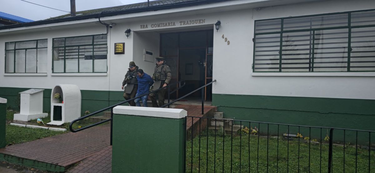 En un rápido y efectivo procedimiento policial, personal de la 3ª Comisaría de Carabineros de Traiguén logró la detención de dos individuos que fueron sorprendidos in fraganti mientras sustraían especies desde un kiosco ubicado en el sector céntrico de la ciudad.