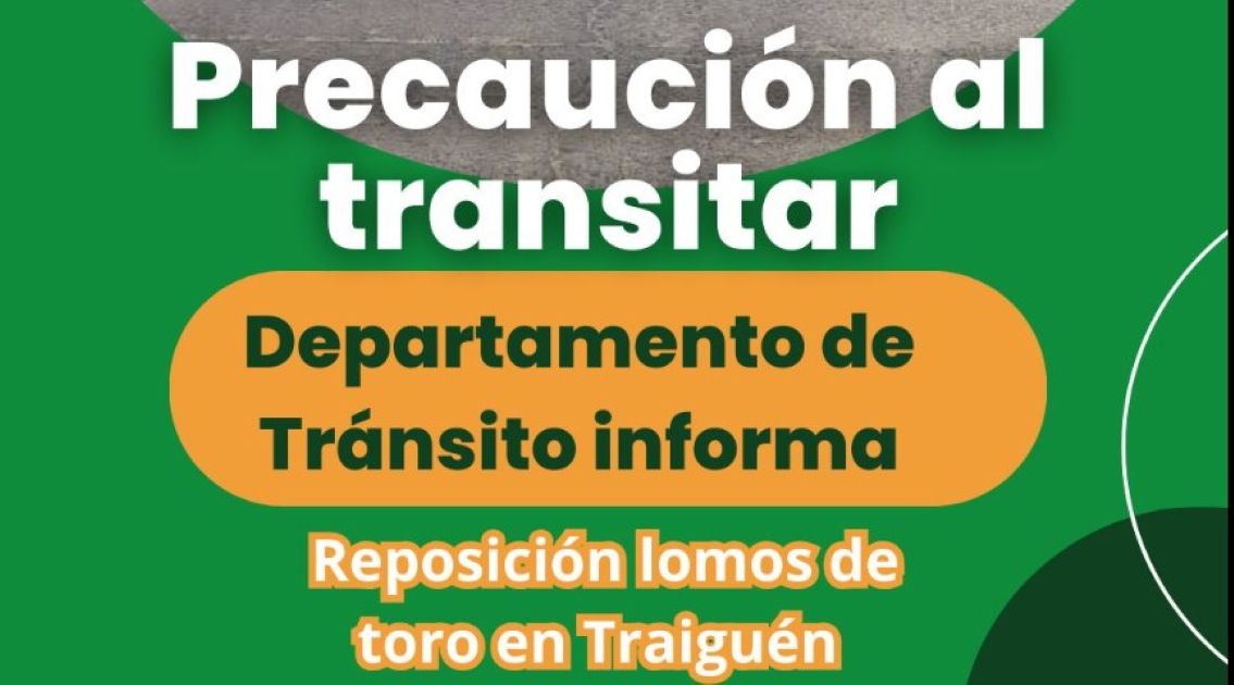 El Departamento de Tránsito de la Municipalidad de Traiguén informa que desde este lunes se dio inicio a una significativa obra vial que busca mejorar la seguridad en nuestras calles: la reposición y construcción de lomos de toro en distintos sectores de la comuna.