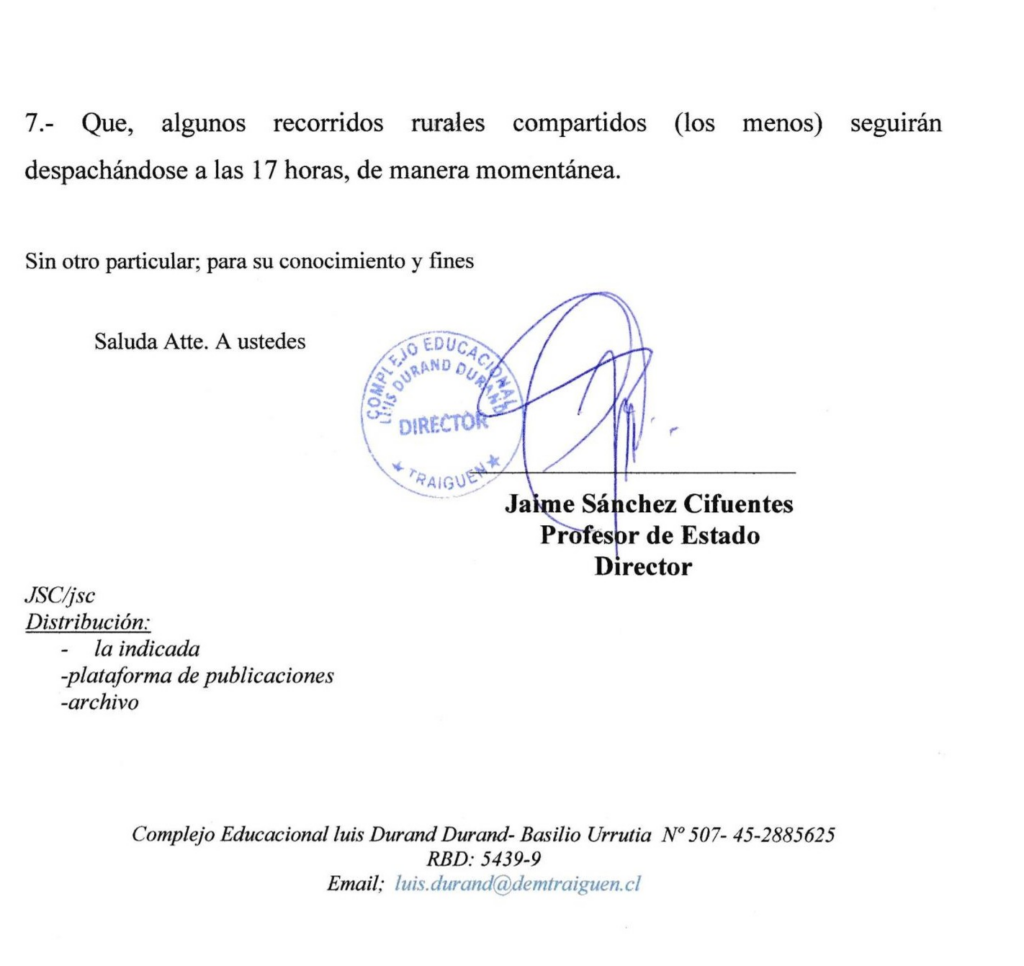 La medida, dada a conocer por el director Jaime Sánchez Cifuentes, responde a diversas situaciones que afectan directamente a los estudiantes, especialmente a aquellos provenientes de sectores rurales y periféricos de la comuna.