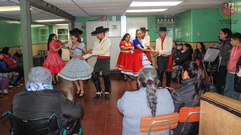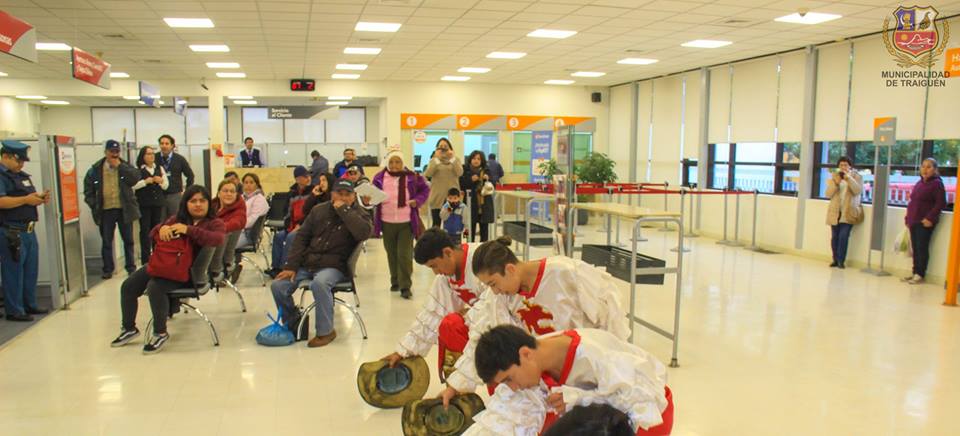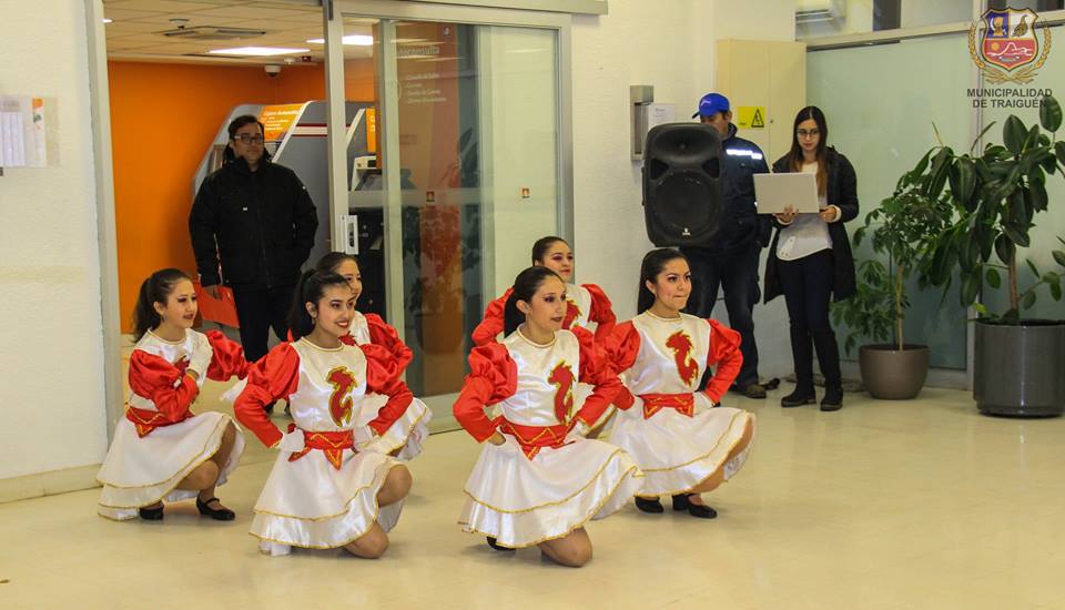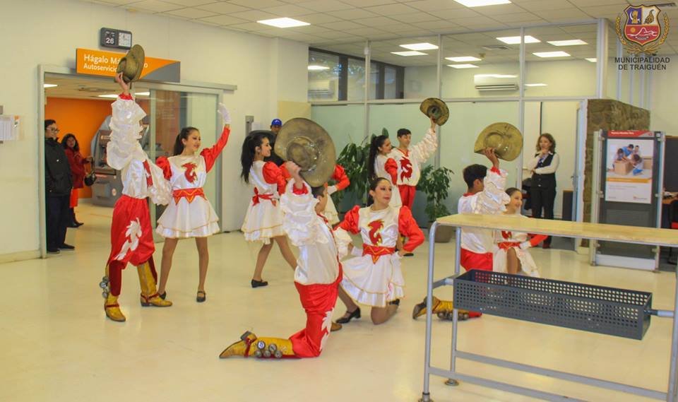 Este año, la actividad organizada por la Casa de la Cultura, iniciativa apoyada por nuestro alcalde don Ricardo Sanhueza Pirce, realizó a primera hora en el Hospital Dr. Dino Stagno en el hall del subterráneo, una sorpresiva presentación, donde más de una treintena de usuarios que a esa hora se encontraban en toma de exámenes, retiro de medicamentos, etc. captaron el momento preciso en el que nuestro ballet realizó esta intervención, con una muestra de danza de nuestro baile nacional.