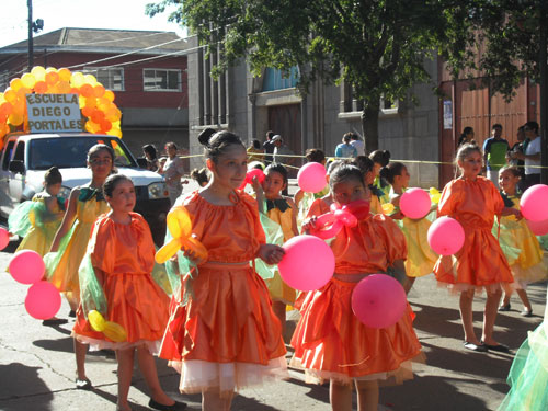 Allí las familias, vecinos y los distintos colegios e instituciones que participaron se deleitaron con las construcciones de 8 carros alegóricos, cada uno con un sentido distinto, además junto a sus respectivas comparsas alegraron la tarde primaveral de la Comuna de Traiguén.
