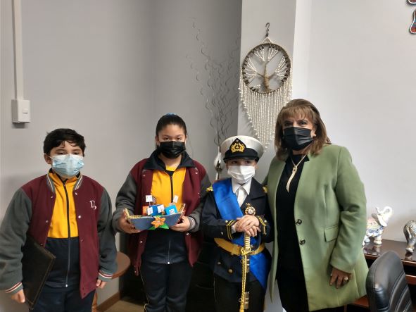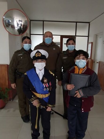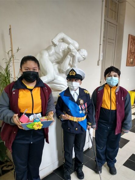 En esta oportunidad, participaron los estudiantes de 5° año Básico: Benjamín Cristóbal Hermosilla France, personificando a la figura de Arturo Prat, Javiera Montserrat Maldonado Toledo, quien entregó los recuerdos a las Autoridades y Jefes de las diferentes Instituciones y Alan Rivera Lobos de 4° Básico, quien realizó una alocución preparada especialmente para esta ocasión.