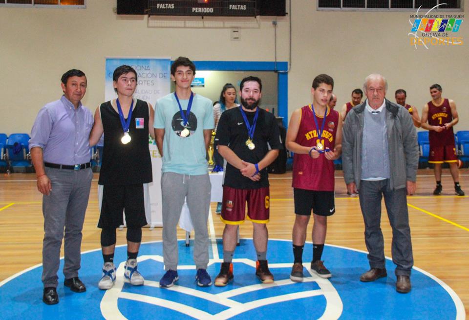 ✅ Quinteto ideal del campeonato, Jaime Sanhueza de los Sauces, Fabián Aburto de escuela de Básquetbol Traiguén, Juan Pablo González del Municipal Traiguén, Héctor Hidalgo de Espartácos de Temuco y Alan Fernández de Municipal Traiguén.