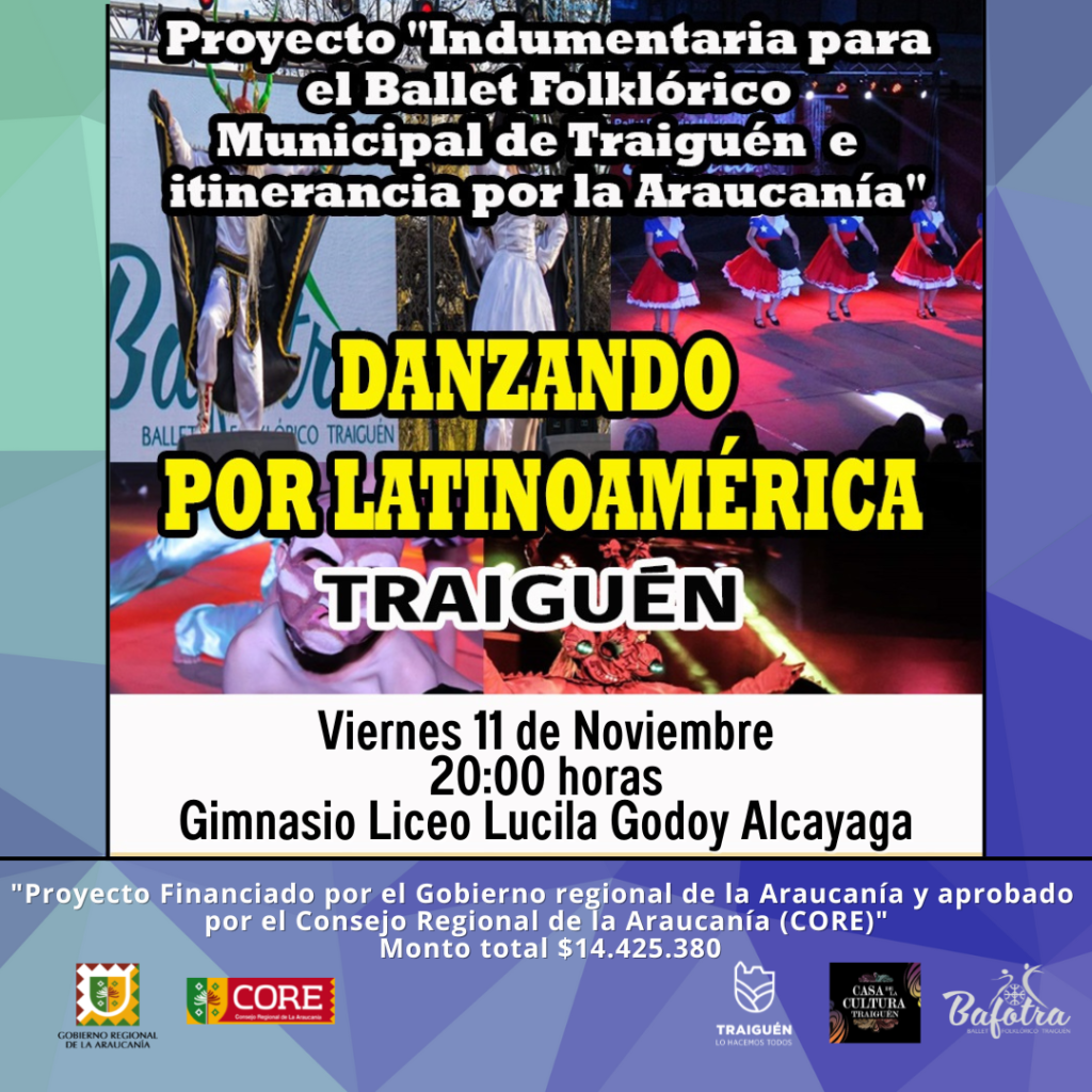 Ejecución del proyecto «Indumentaria para el Ballet Folklórico Municipal de Traiguén e itinerancia por la Araucanía», Financiado por el Gobierno Regional de la Araucanía y Aprobado por el Consejo Regional de la Araucanía (CORE), por un monto total de $14.425.380.