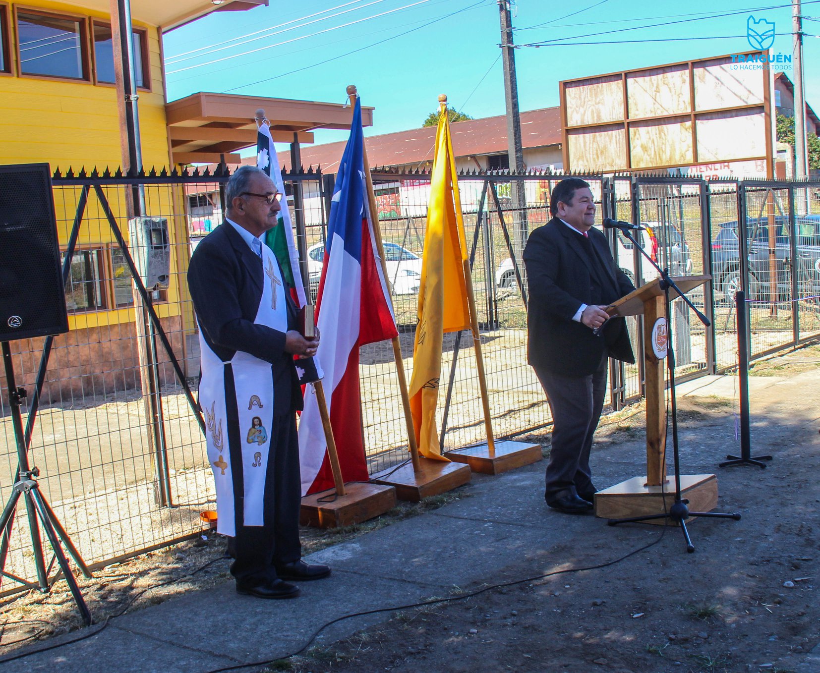 La actividad fue encabezada por nuestro alcalde don Ricardo Sanhueza Pirce y que contó con la presencia del Diputado Jorge Rathgeb S., la Diputada Andrea Parra S., el presidente del Consejo Regional Juan Carlos Beltrán S., concejales, Representantes de las Iglesias Católica y Evangélica, Dirigentes y vecinos del sector, quienes con alegría celebraron la inauguración de la que, desde hoy, será el nuevo punto de encuentro de este sector.