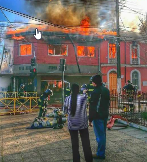Pasado las 13:00 hrs de hoy se declaro un incendio de Gran proporción en pleno centro de Traiguén, específicamente en la esquina de calle Saavedra con Lagos a Pasos de la Plaza de Armas de nuestra Ciudad.