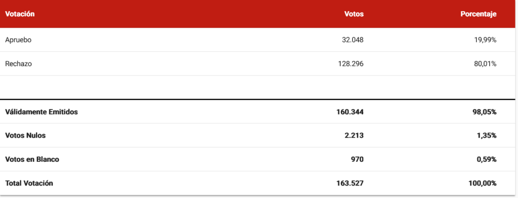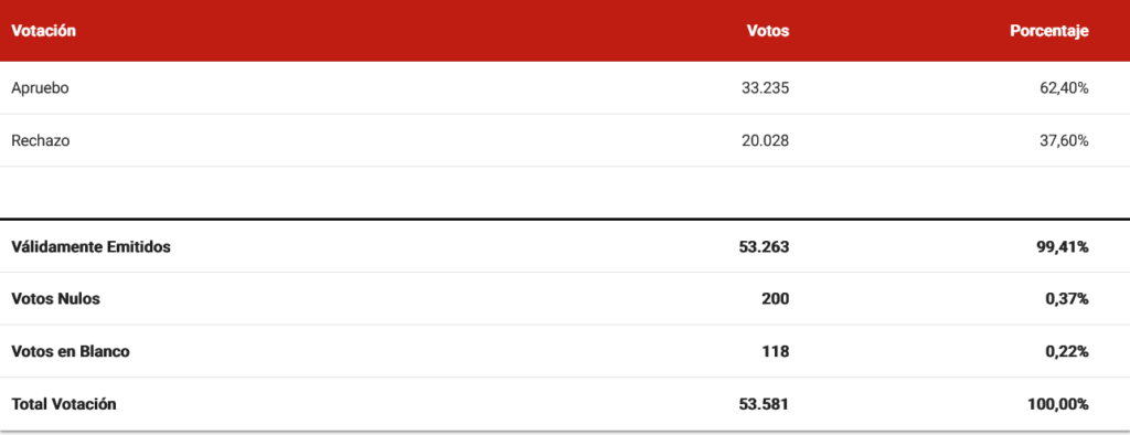 513 mesas escrutadas de un total de 513, correspondiente al 100,00%.