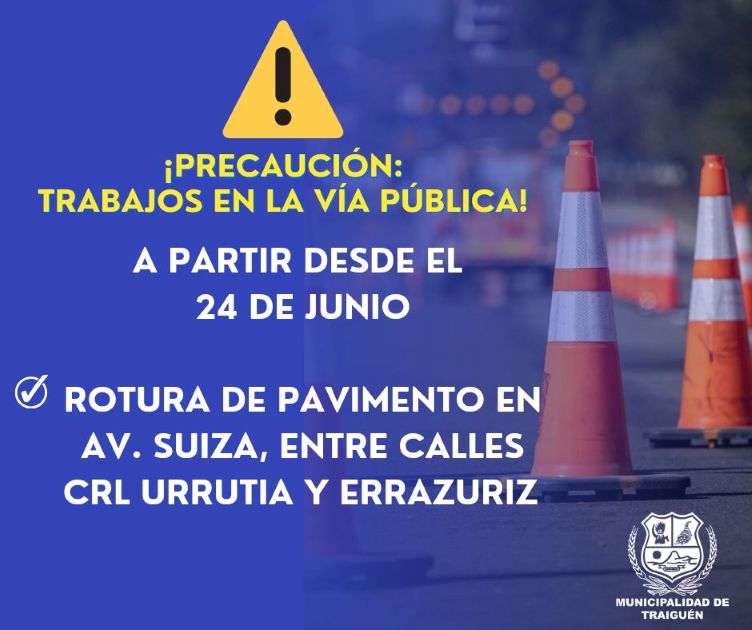 A partir de hoy 24 de junio, se llevará a cabo la rotura de pavimento en las siguientes intersecciones: